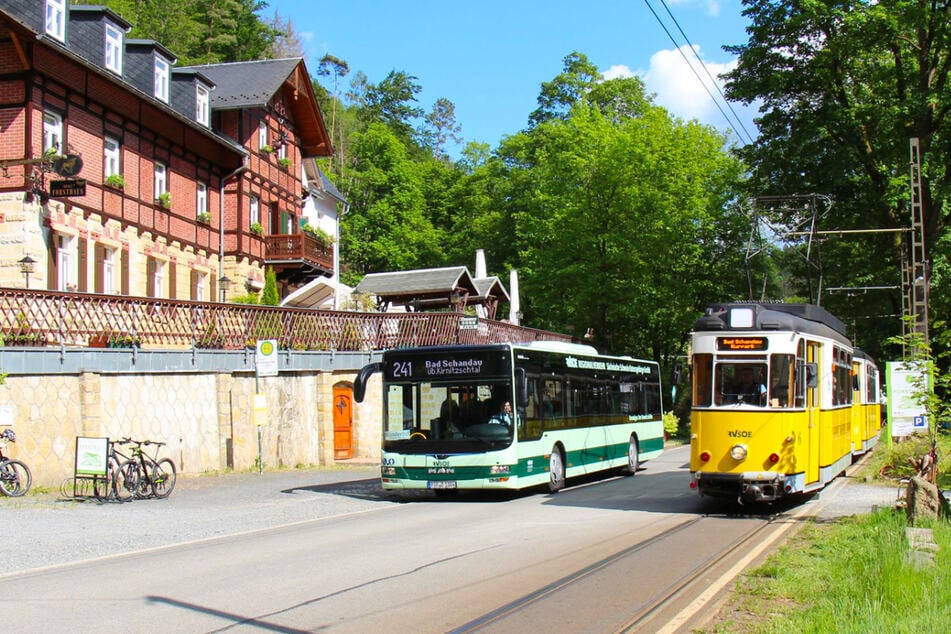 Von der Haltestelle Bad Schandau, Elbbrücke fährt die rechtselbisch verkehrende Buslinie 241direkt zur Haltestelle Bad Schandau, Kurpark.