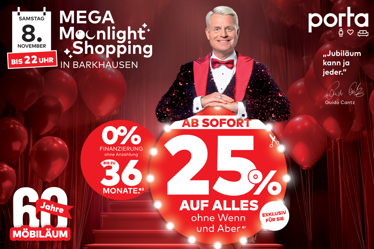 Barkhausen – porta Barkhausen lädt Kunden am Samstag (8.11.) zum beliebten Mega Moonlight Shopping bis 22 Uhr mit tollem Rabatt und coolen Aktionen.