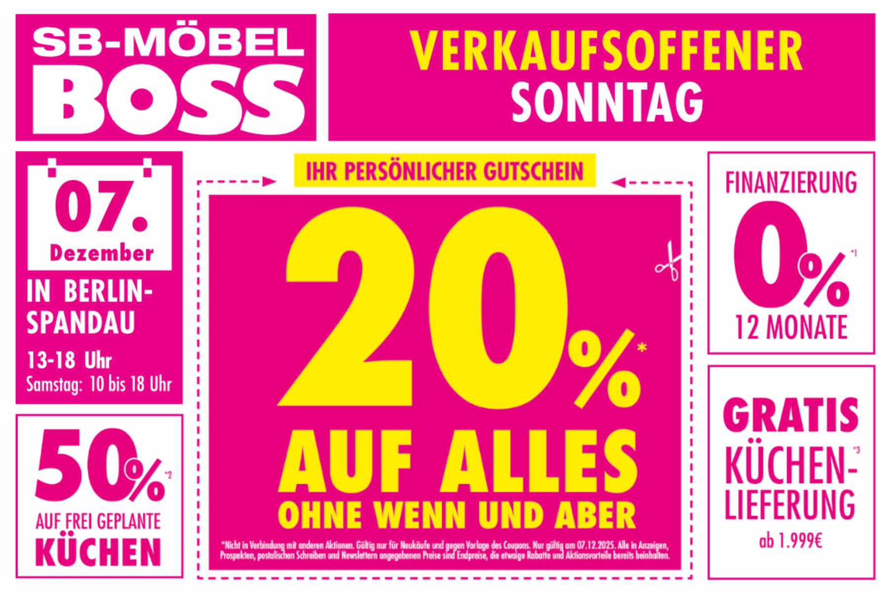Spar-Aktionen zur Sonntagsöffnung (7.12.) bei Möbel Boss in Berlin