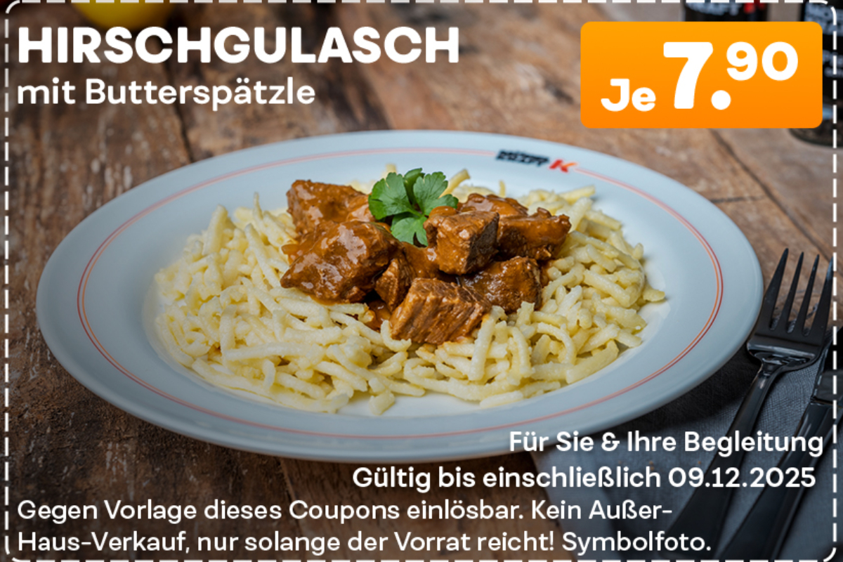 - Hirschgulasch mit Butterspätzle