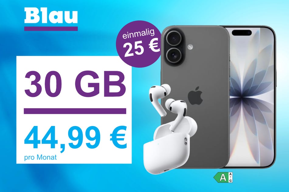 - Blau Allnet L mit 30 GB - iPhone 17 mit AirPods Pro 3