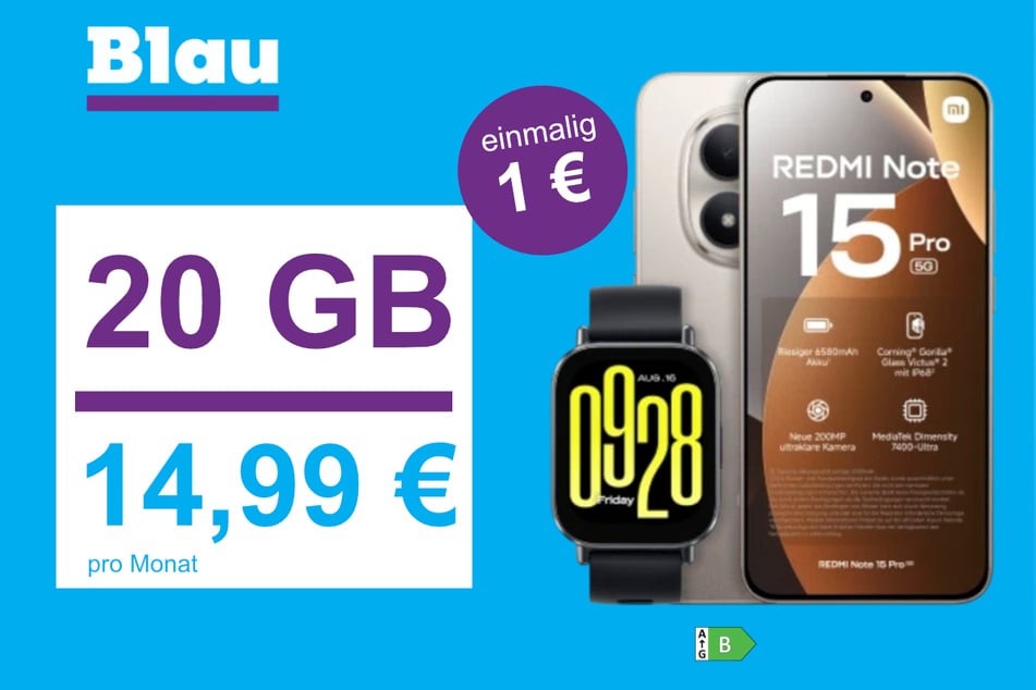 - Blau Allnet M mit 20 GB - Xiaomi Redmi Note 15 Pro 5G +