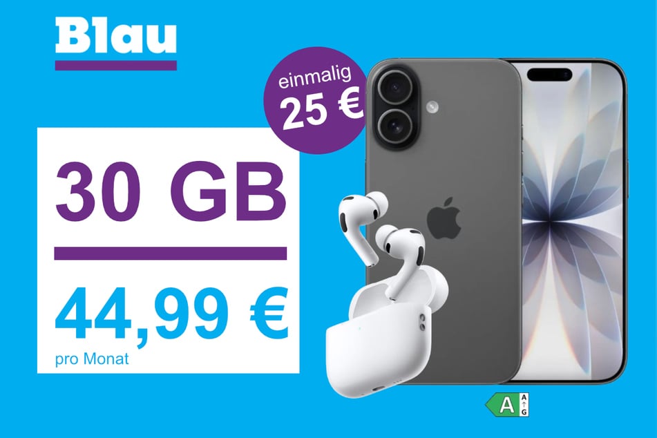 - Blau Allnet L mit 30 GB - iPhone 17 mit AirPods Pro 3
