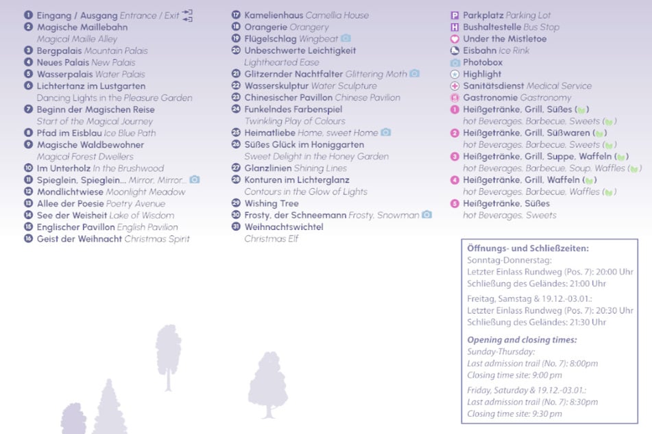Bis zum 11. Januar ist der circa zwei Kilometer lange Rundweg täglich von 16:30 bis 21 Uhr geöffnet. Ein Spaziergang durch das Lichtermeer verspricht magische Wintermomente.
