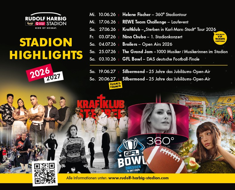 Passend dazu wächst die Vorfreude auf einen unvergesslichen Event-Sommer, in dem das Rudolf-Harbig-Stadion wieder zur größten Bühne Dresdens wird.