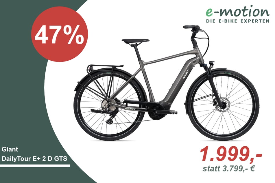 Mit dem Giant DailyTour E+ 2 D GTS für nur 1.999 statt 3.799 Euro könnt Ihr komfortabel und weit fahren durch die robuste Federgabel sowie den 625 Wh Akku – ideal für ausgedehnte Touren und den urbanen Alltag.