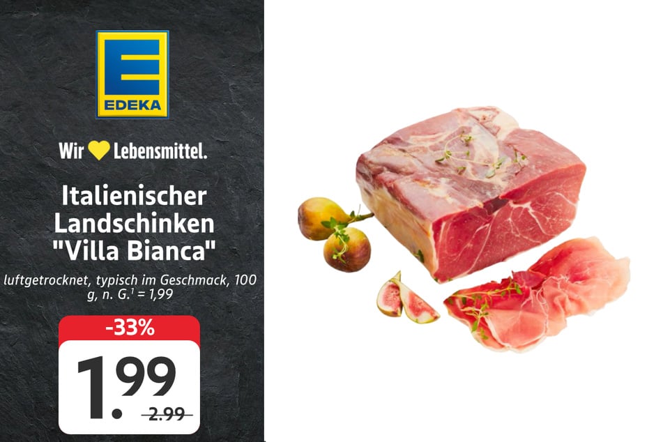 So sind EDEKA Bio Erdbeeren für nur 2,49 Euro (in der App² sogar nur 1,99 Euro) oder Italienischer Landschinken "Villa Bianca" für 1,99 statt 2,99 Euro (-33%) erhältlich.