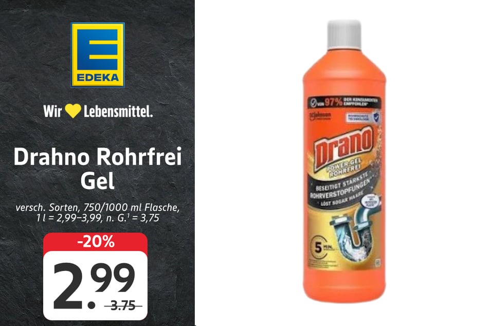 für 2,49 statt 2,79 Euro (-10%)Drahno Rohrfrei Gel