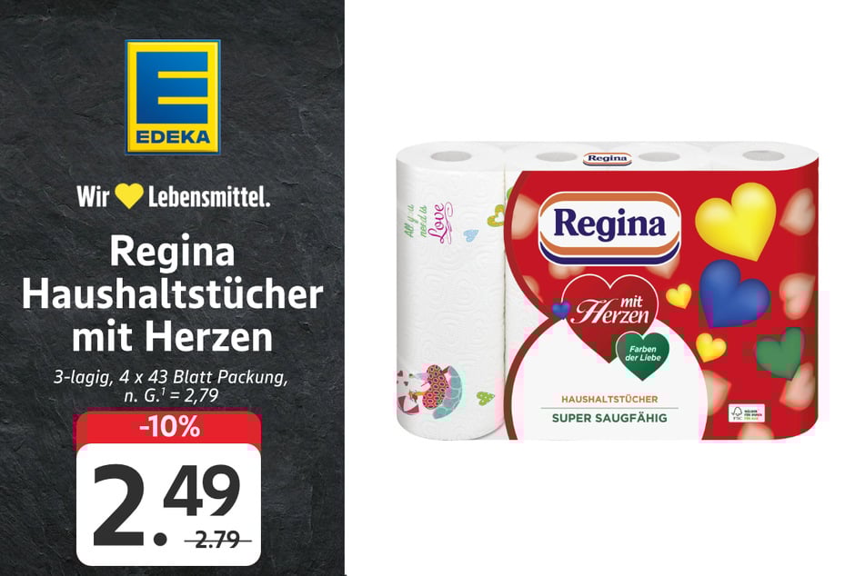 für 2,79 statt 3,25 Euro (-14%)Regina Haushaltstücher mit Herzen
