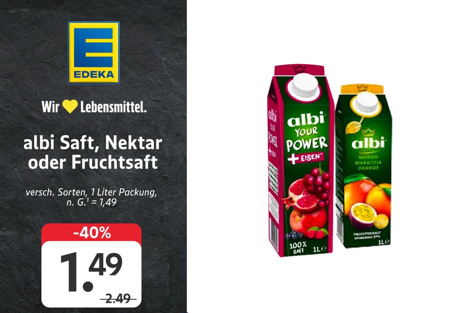 für 1,99 statt 2,25 Euro (-11%)albi Saft, Nektar oder Fruchtsaftgetränk