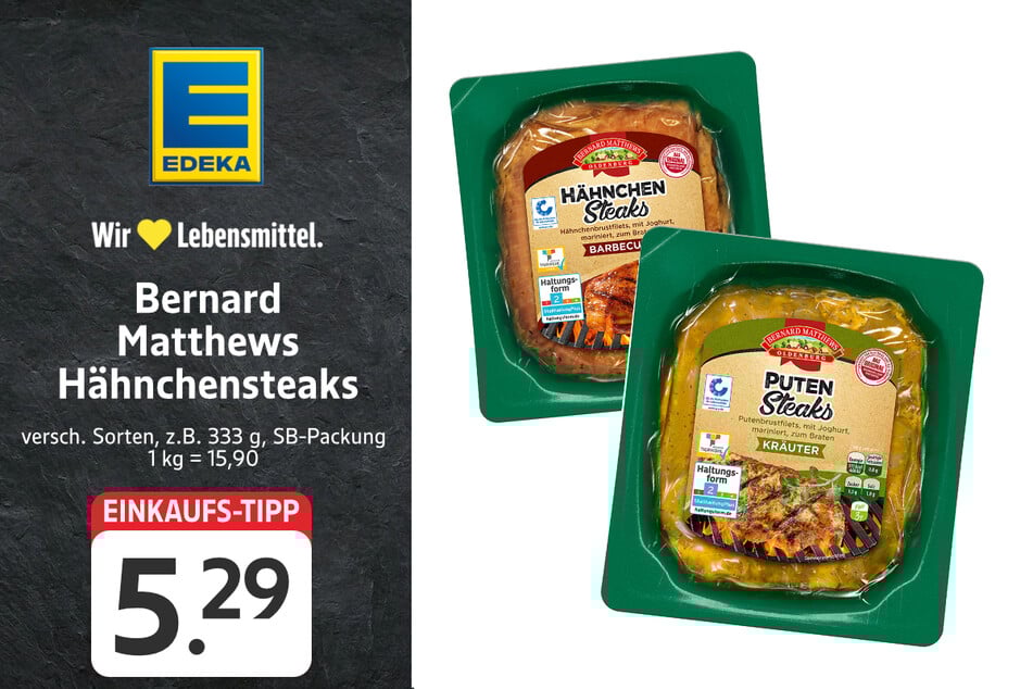 Wie wär's z.B. mit den Hähnchensteaks von Bernard Matthews für 5,29 Euro?