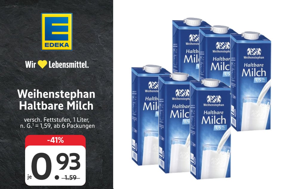 für 1 statt 2,19 Euro (-54%)Weihenstephan Haltbare Milch