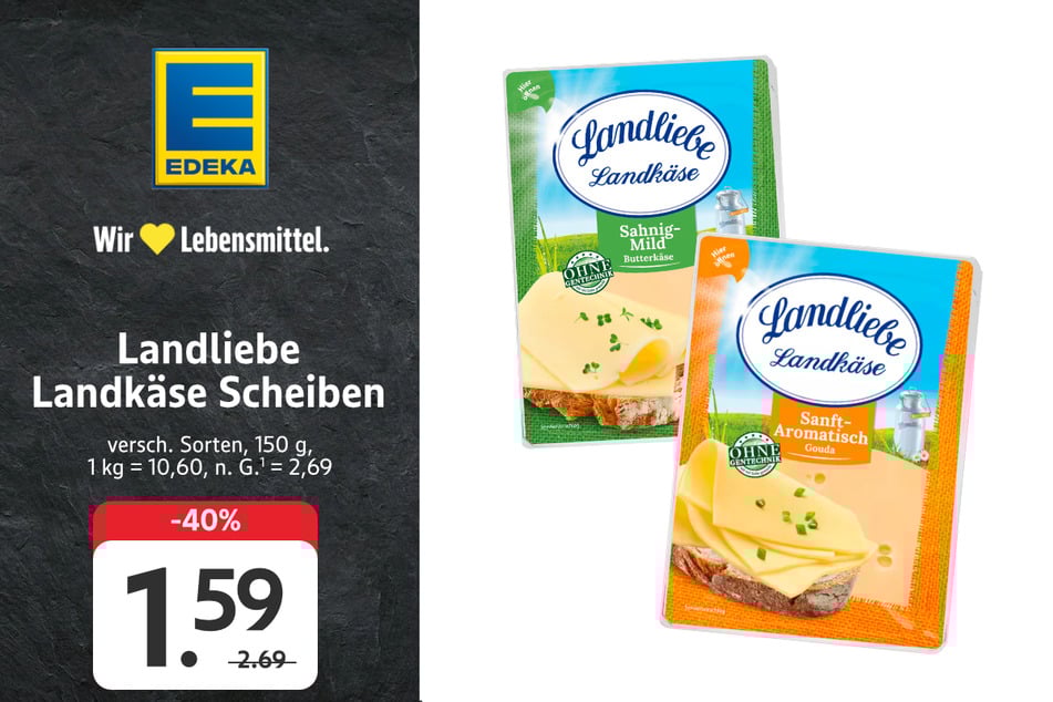 Ein Muss für den Frühstückstisch sind z.B. die Landliebe Landkäse Scheiben für 1,59 statt 2,69 Euro (-40%) – mit der App für nur 1,39 Euro (-48%)².
