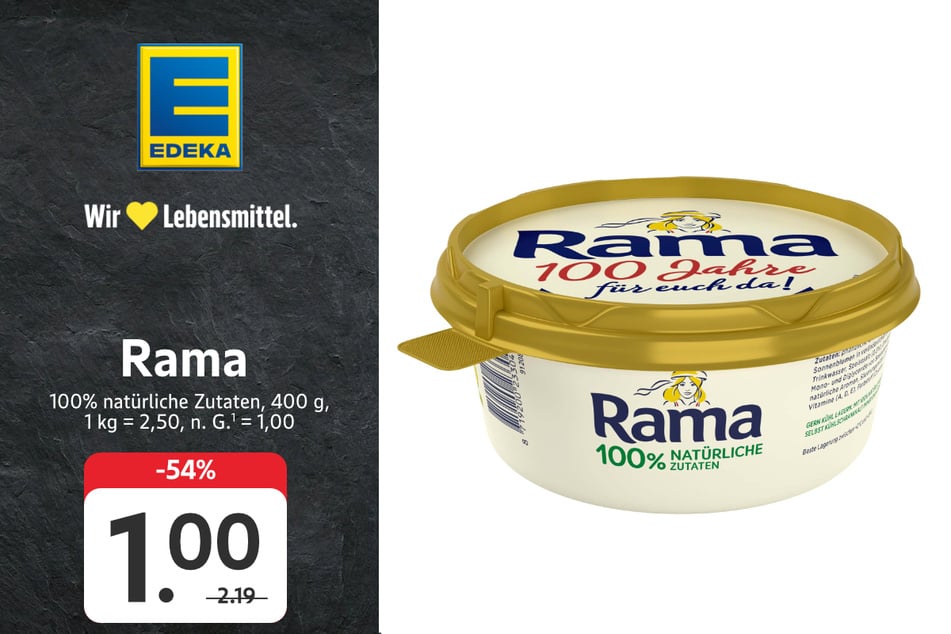 2) Angebote nur gültig gegen Vorlage der EDEKA App an der Kasse. Eine vorherige erfolgreiche Registrierung und Auswahl des Lieblingsmarktes sind erforderlich. Gültig in teilnehmenden Märkten.