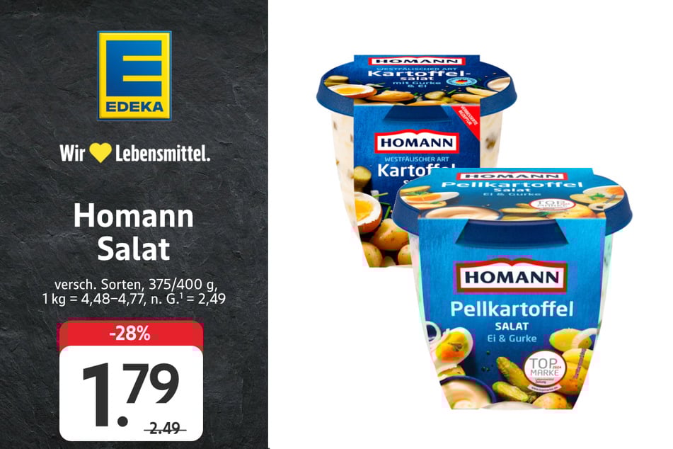 für 1,99 statt 3,69 Euro (-46%)Homann Salat