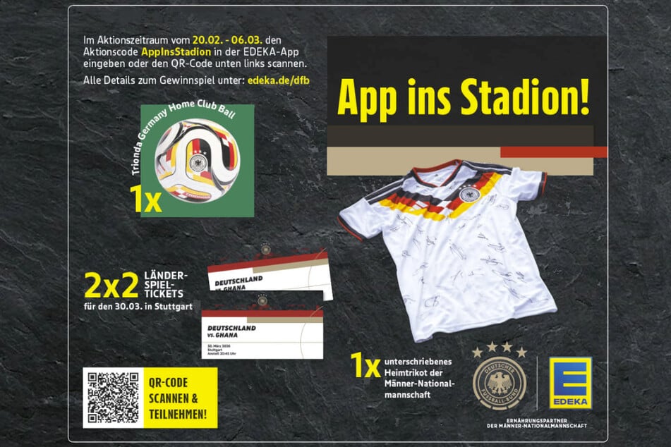 Wer noch bis zum 6. März in der kostenlosen EDEKA App den Aktionscode "AppInsStadion" eingibt, hat die Chance auf tolle Preise.
