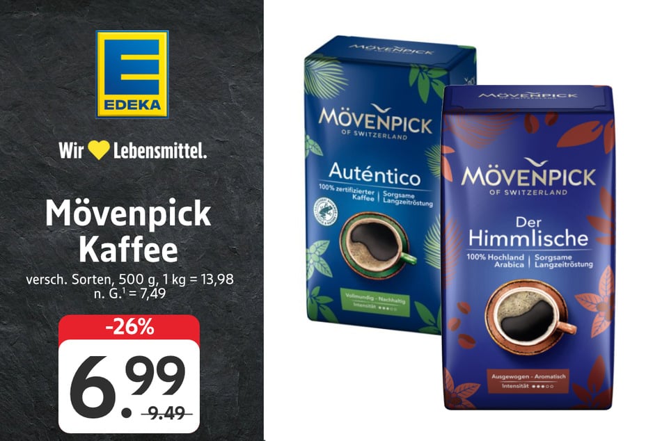 Leckeren Mövenpick Kaffee gibt's für 6,99 statt 9,49 Euro (-26%) oder mit App für nur 6,49 Euro (-31%)².