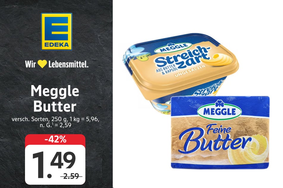 2) Angebote nur gültig gegen Vorlage der EDEKA App an der Kasse. Eine vorherige erfolgreiche Registrierung und Auswahl des Lieblingsmarktes sind erforderlich. Gültig in teilnehmenden Märkten.