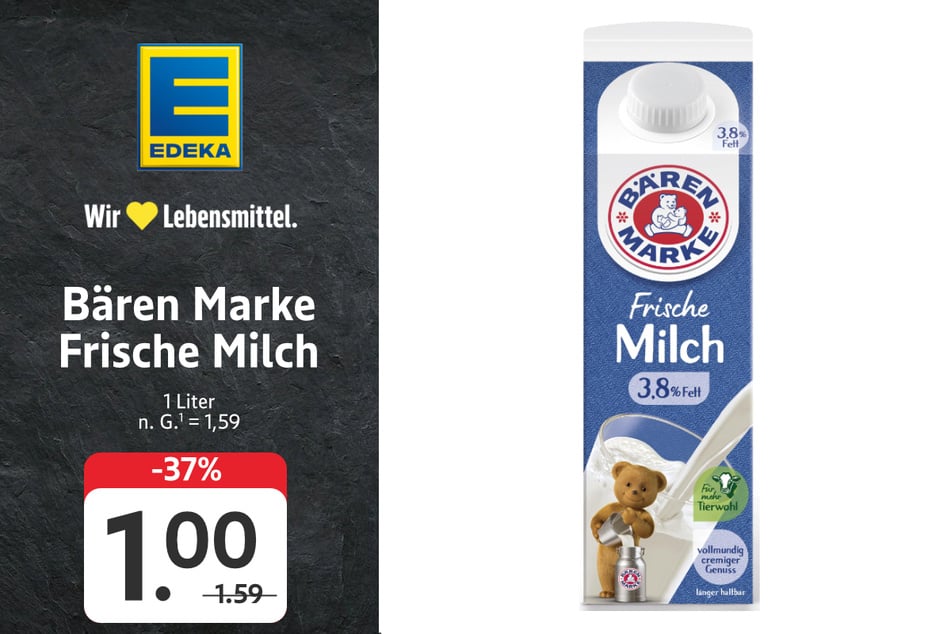 U.a. ist Bären Marke Frische Milch für 1 statt 1,59 Euro (-37%) oder Emmi Caffè oder Choco Latte* für 1 statt 2,39 Euro (-58%) zu haben.