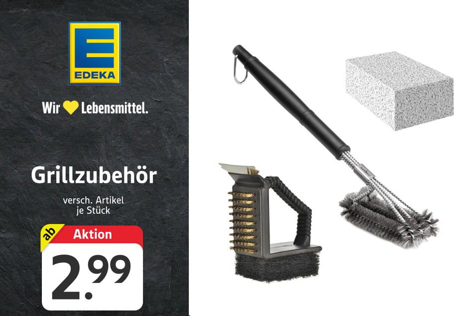 Für die kommende Grill-Saison stattet Euch EDEKA u.a. mit dem besten Grillzubehör aus. Das gibt's ab 2,99 Euro und dazu gehören Grillreinigungsbürsten sowie Schleifsteine.
