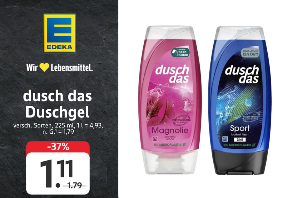 Dazu gehört u. a. dusch das Duschgel für nur 1,11 statt 1,79 Euro (-37%).