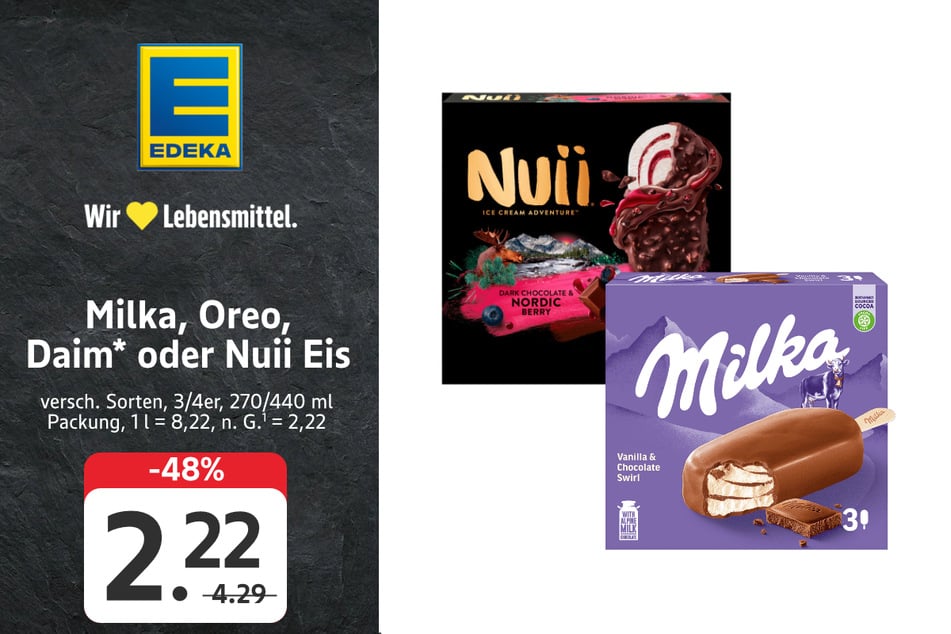 für je 1,49 statt 2,69 Euro (-44%) - Milka, Oreo, Daim* oder Nuii Eis