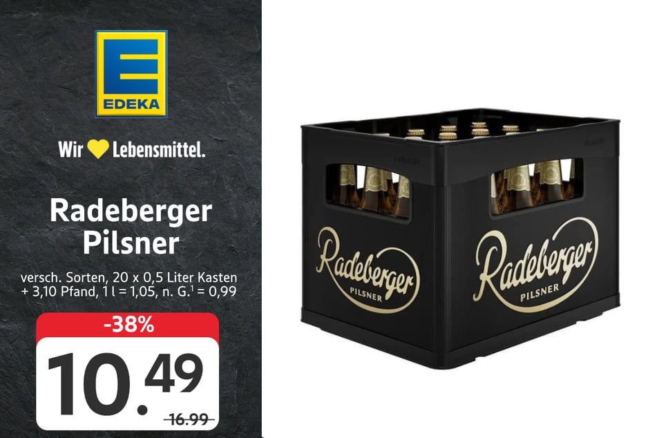 Radeberger Pilsner im Kasten, auch alkoholfrei, kostet z.B. nur 10,49 statt 16,99 Euro (-38%).