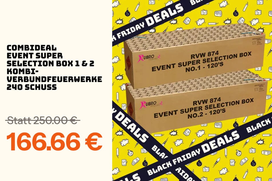 für 33,33 statt 44,44 Euro - COMBIDEAL Event Super Selection Box 1 & 2 – Kombi-Verbundfeuerwerke 240 Schuss