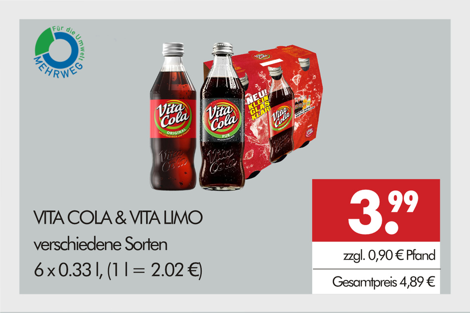 Pünktlich zum Ferienstart sind aber auch jede Menge alkoholfreie Getränke stark reduziert. Darunter zum Beispiel Bad Brambacher Gartenlimonade, CocaCola, Fanta, Fuze Tea oder der regionale Klassiker VitaCola.