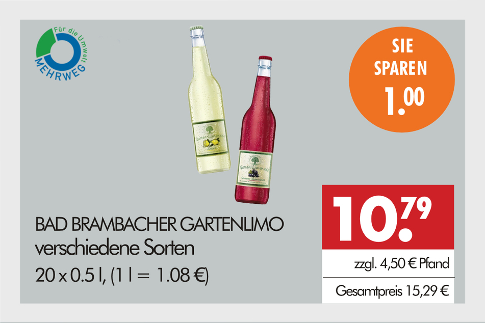 Aber auch, wenn's bei Euch gern mal alkoholfrei sein darf, bietet der Getränkefachmarkt Eures Vertrauens jede Menge Highlights für Schnäppchenjäger: Aktuell bekommt Ihr Bad Brambacher Gartenlimonade, Bionade oder regionale Wasser von Ileburger oder Bad Liebenwerda zum absoluten Sonderpreis.