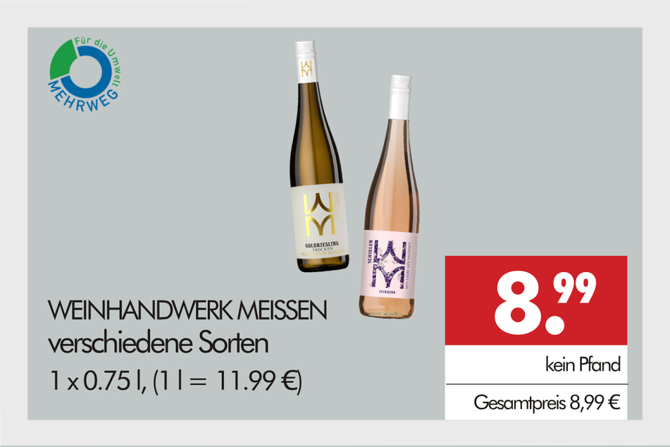 Unter anderem findet Ihr Wein der Marke Weinhandwerk Meissen für 8,99 Euro, Rotkäppchen Wein für nur 3,33 Euro oder den besonderen Rosso Nobile für nur 3,49 Euro.