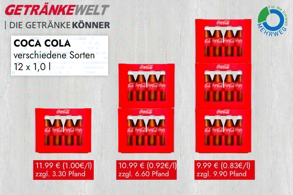 Richtig gut: Bei Coca Cola profitiert Ihr von der Staffelpreis-Aktion. Je mehr Kästen also im Wagen landen, desto attraktiver wird der Preis pro Kasten.