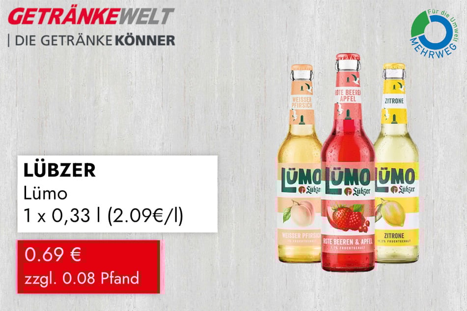 Wie könnte man besser an so einem Abend anstoßen, als mit einer kühlen Limo? Ganz neu im Getränkwelt-Regal steht daher die LÜBZER Lümo (1 x 0,33 l) für 0,69 Euro.