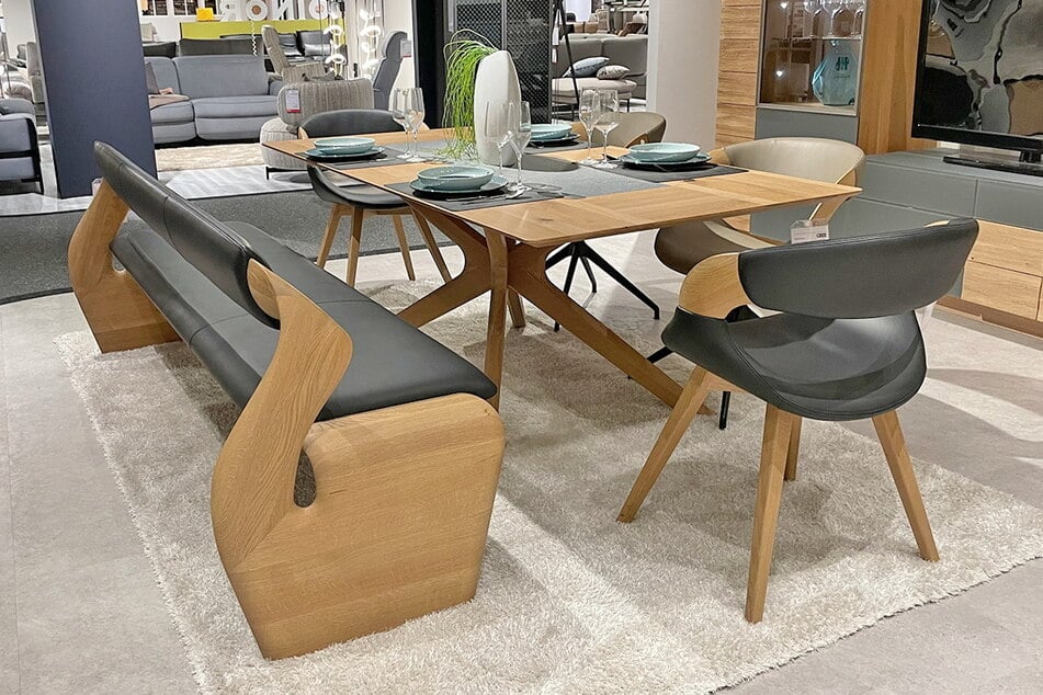 Außerdem warten tolle Angebote. Darunter Esstische für 935,40 statt 1.599 Euro, Drehstühle für 215,40 statt 359 Euro, Garderoben für 3.353,40 statt 5.589 Euro, Spiegel für 155,40 statt 259 Euro und Tischleuchten für 13,95 statt 27,90 Euro.