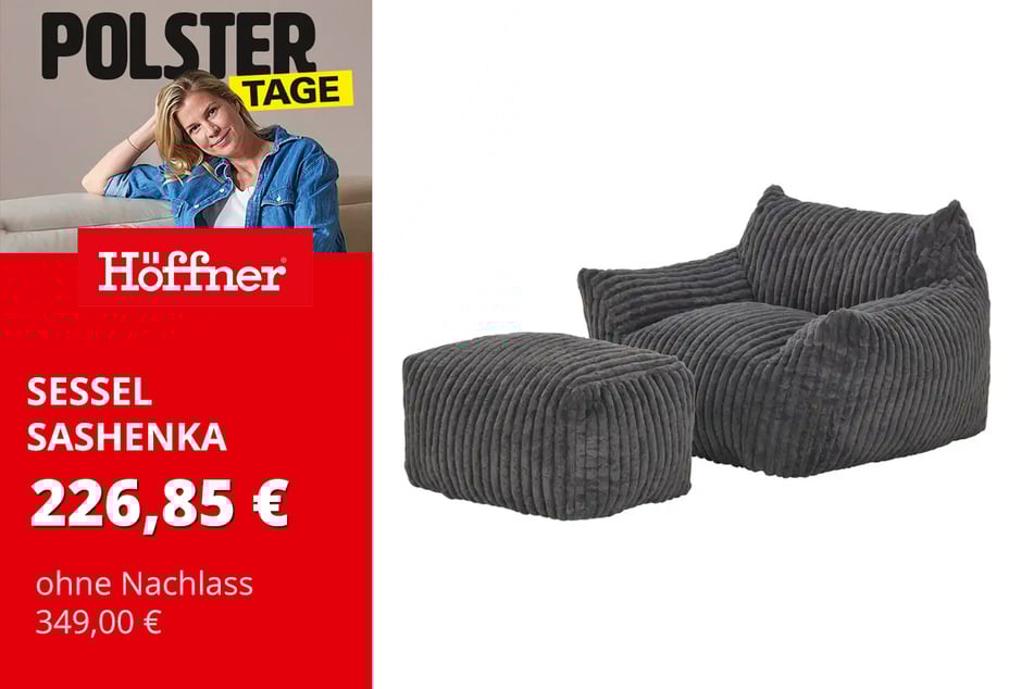 Auf Wunsch gewährt Ihnen Höffner im Möbelhaus nach Vorlage Ihrer Kundenkarte auf alle als „Aktionspreis“ gekennzeichneten Sofas und Sessel zusätzlich einen Gutschein über 200€ ab 1.000€ Einkaufswert oder 500€ ab 3.000€ Einkaufswert. Der Einkaufswert ist die Summe der am Artikel ausgezeichneten Preise nach Rabatt. Der Gutscheinbetrag wird vom Einkaufswert abgezogen. Pro Person und Haushalt nur ein Gutschein. Die Aktion gilt nicht für Kaufgutscheine und Dienstleistungen. Im Onlineshop werden immer Endpreise angezeigt. Auf diese sind keine weiteren Rabatte möglich, auch nicht im Möbelhaus. Nicht mit anderen Gutscheinen oder Mailingaktionen kombinierbar. Gültig für Neukäufe, keine Barauszahlung möglich. Gültig bis mindestens 21.04.2026. In zeitlich befristeten Aktionen sind höhere Rabatte und weitere Preisnachlässe möglich. Gilt nicht in unseren Möbelhäusern in Halle-Peißen und Neuss.