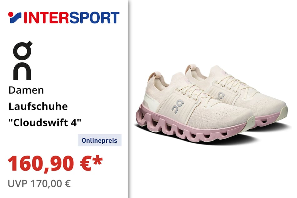 Für das ideale Laufgefühl sorgen die On Damen Laufschuhe "Cloudswift 4" für 160,90 statt 179 Euro.