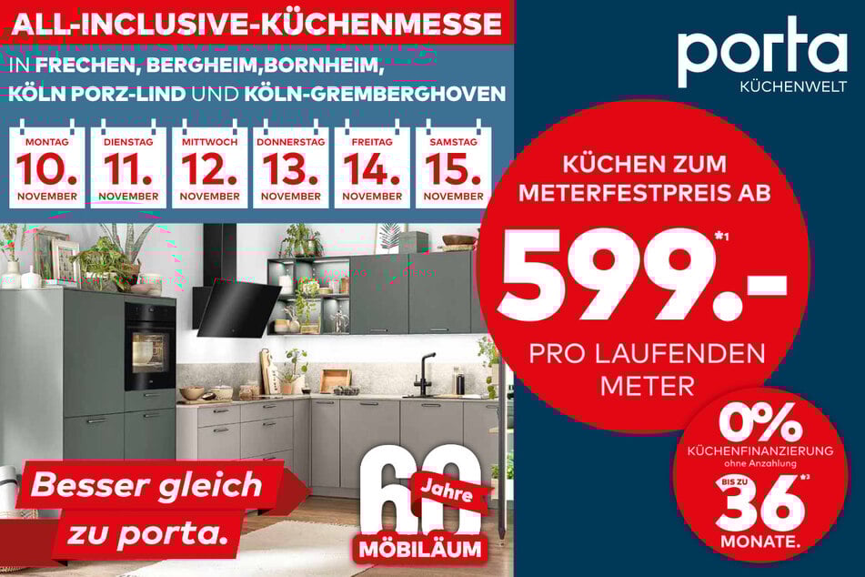 Bis Samstag (15.11.) findet in den porta-Märkten im Rheinland die All-Inclusive-Küchenmesse statt. Was das bedeutet?