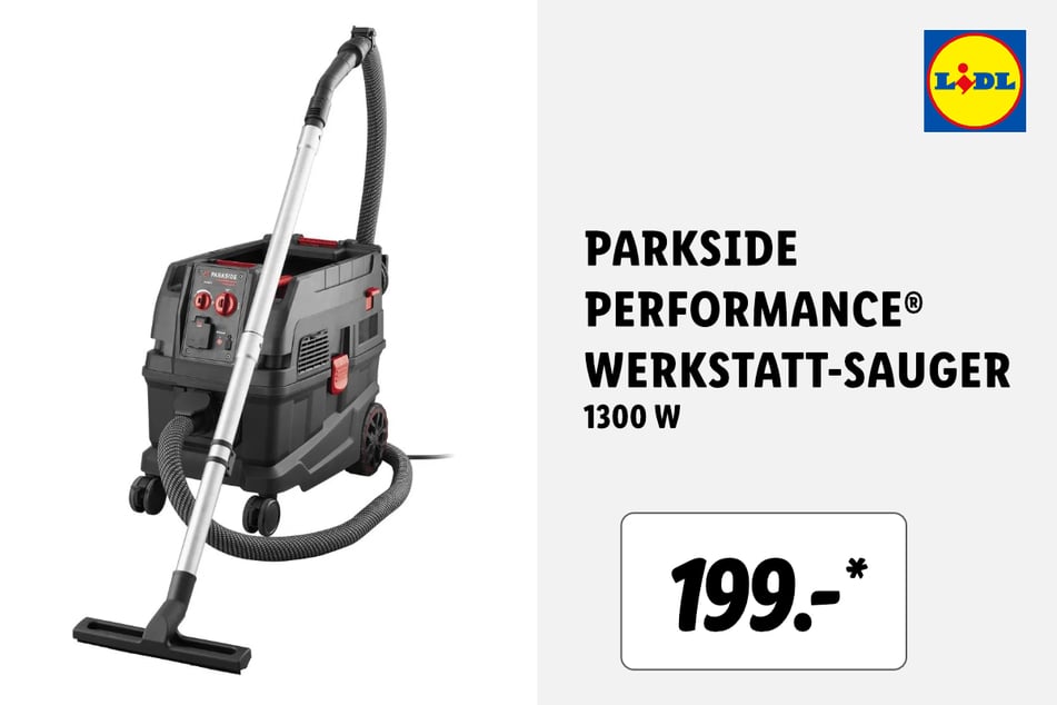 Blitzblank wird das Auto z. B. mit diesem Parkside Performance Werkstatt-Sauger für 199 Euro*.