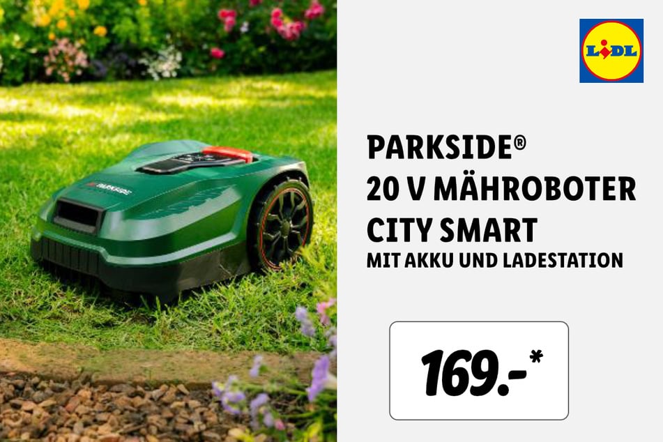 Mit dabei ist dieser Parkside 20 V Mähroboter City Smart für 169 Euro*.