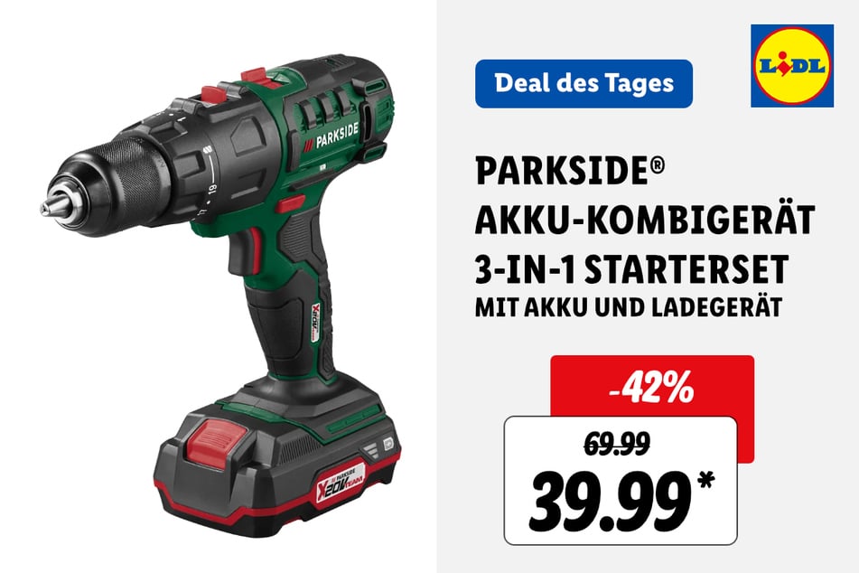 für 59,99 statt 169,99 Euro* (-64%) - Parkside Akku-Kombigerät 3-in-1 Starterset