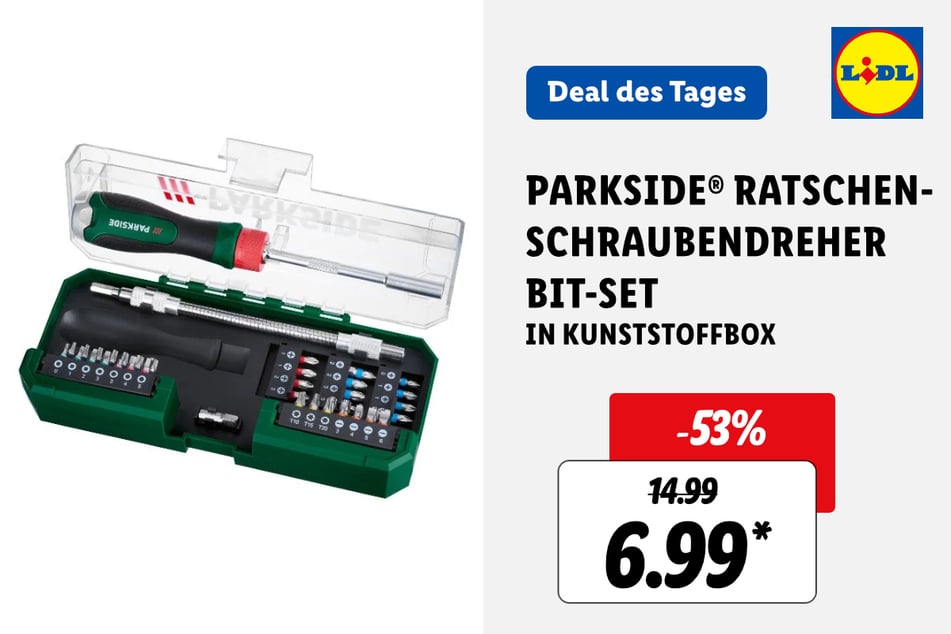 Auch richtig günstig sind Akku-Kombigeräte für 39,99 statt 69,99 Euro* (-42%), Knabberer für 32,99 statt 57,99 Euro* (-43%) und Ratschen-Schraubendreher Bit-Sets für 6,99 statt 14,99 Euro* (-53%).