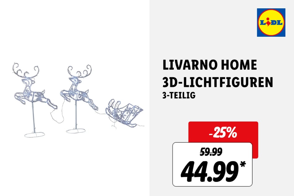 Schnappt Euch zum Beispiel diese Livarno home 3D-Lichtfiguren für 44,99 statt 59,99 Euro* (-25%).