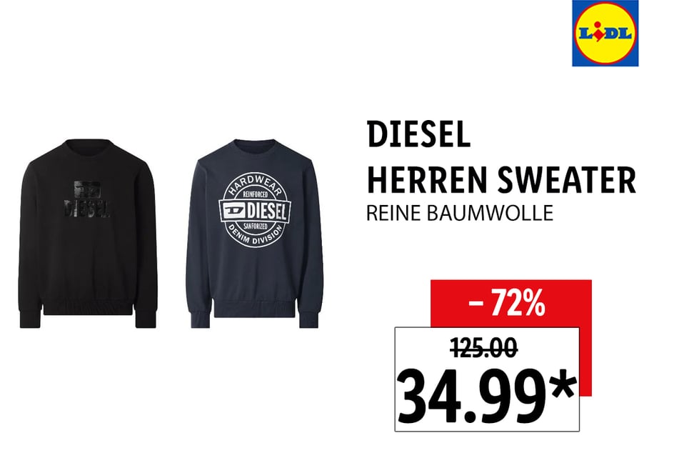 Ein Highlight ist dieser Diesel Herren Sweater für nur noch 34,99 statt 125 Euro* (-72%).