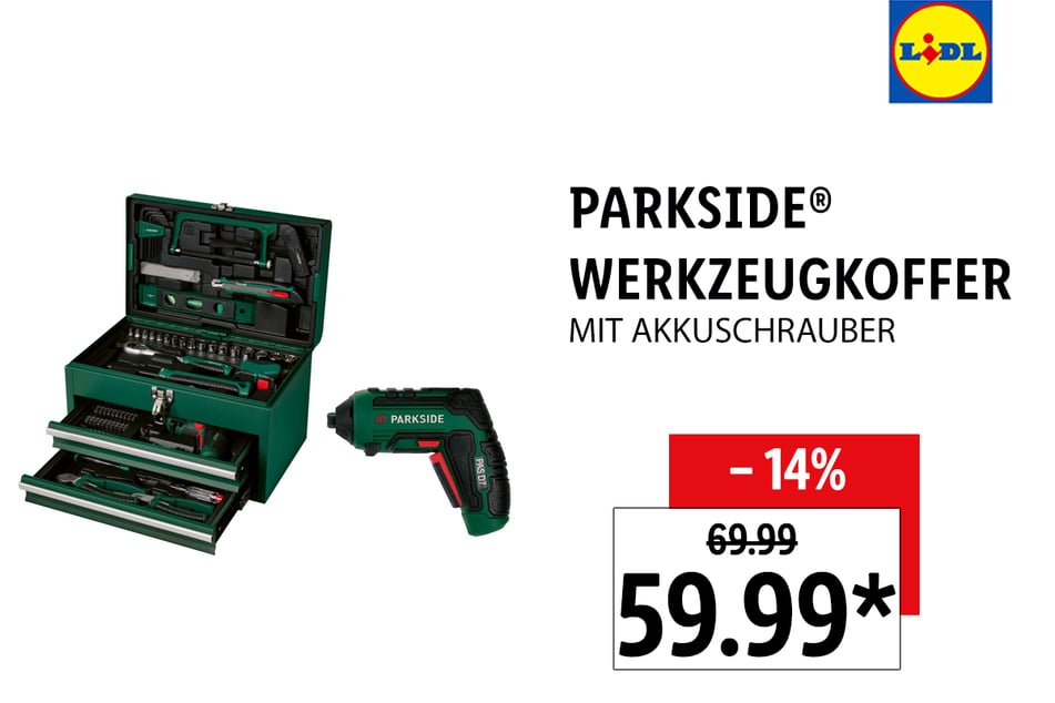 für 12,99 Euro* - Parkside Werkzeugkoffer mit Akkuschrauber