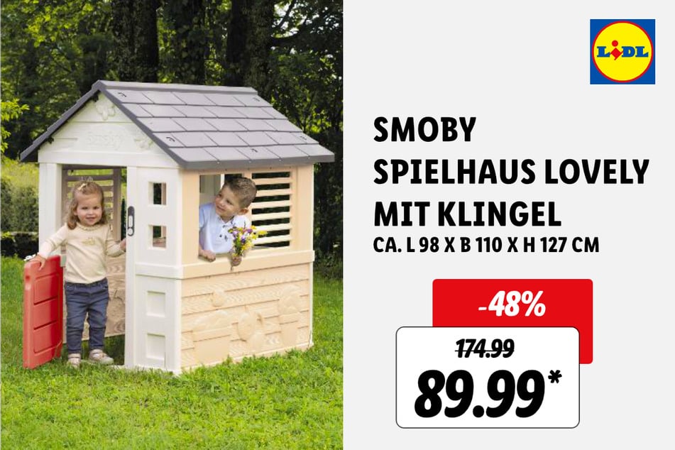 Die Kids werden sich u. a. über dieses Smoby Spielhaus Lovely mit Klingel für 89,99 statt 174,99 Euro* (-48%) freuen.