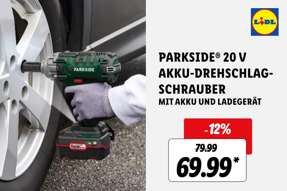 Mit diesem Parkside 20 V Akku-Drehschlagschrauber für 69,99 statt 79,99 Euro* (-12%) klappt die Kfz-Radmontage wie von selbst.