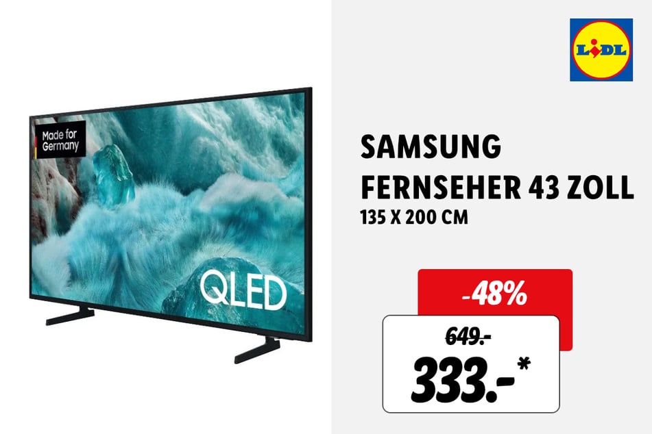 Zudem gibt's Samsung Fernseher 43 Zoll für 333 statt 649 Euro* (-48%), Satin-Bettwäsche für 14,99 Euro* und Satin-Spannbettlaken für 12,99 Euro*.