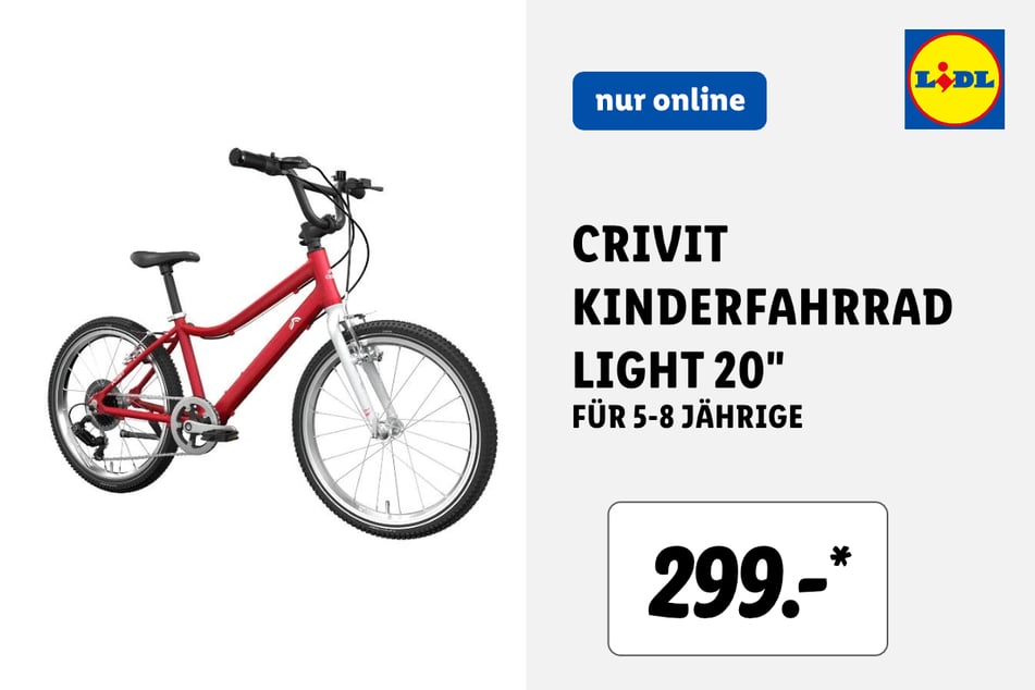 Unter anderem gibt's dieses Crivit Kinderfahrrad Light 20'' (nur online) für 299 Euro*.