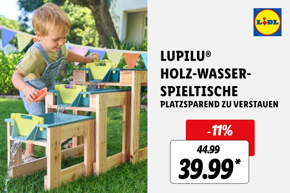 Viel Spaß bringen diese Lupilu Holz-Wasserspieltische für 39,99 statt 44,99 Euro* (-11%).