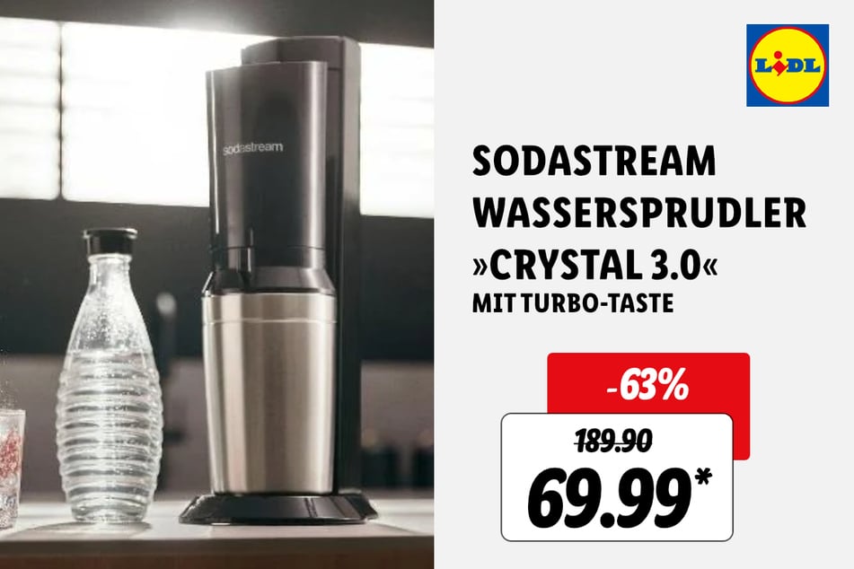 Sehr preiswert gibt's diesen Sodastream Wassersprudler "Crystal 3.0" für 69,99 statt 189,90 Euro* (-63%).
